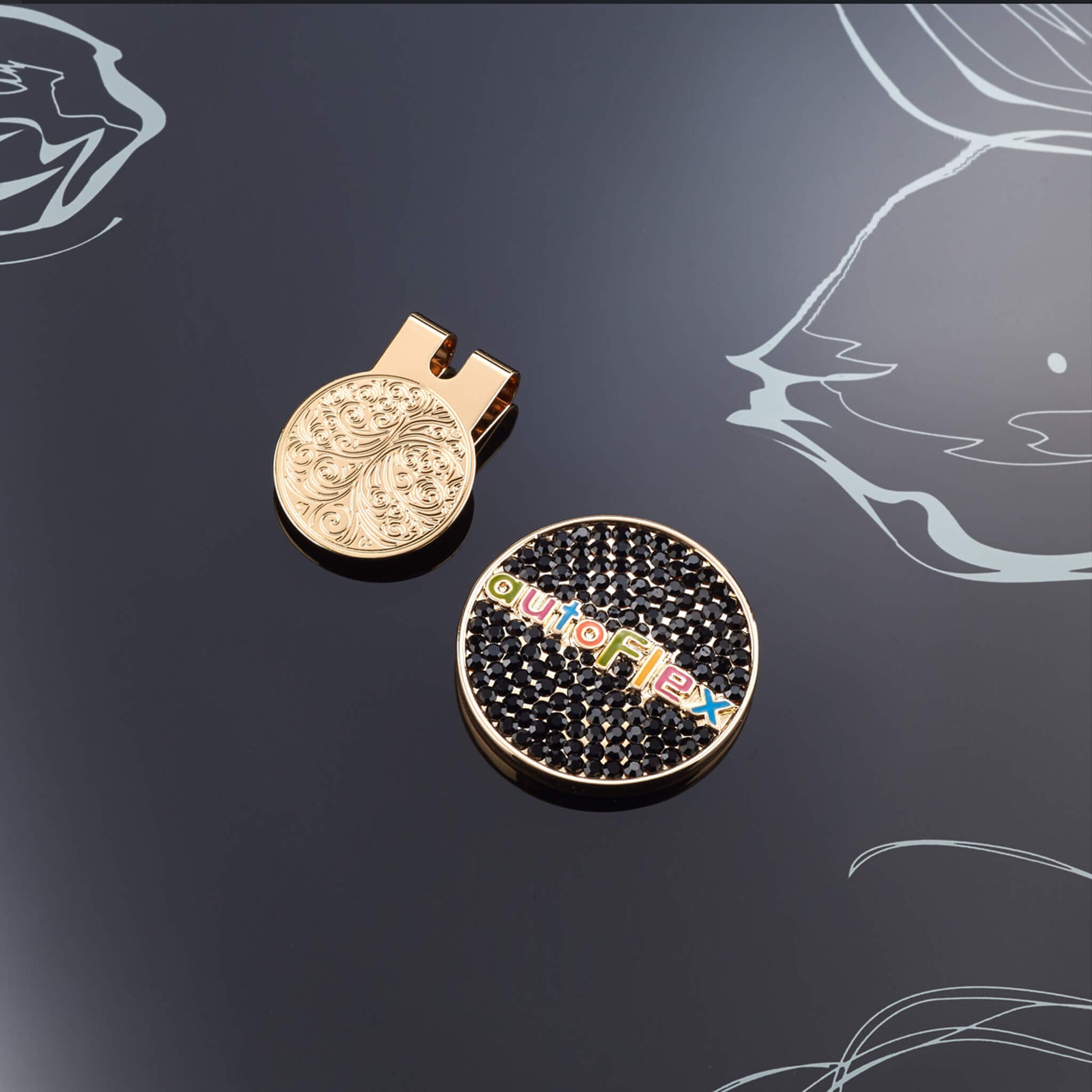 Enjoy this AutoFlex Premium Black Round Logo Magnetic Ball Marker, every one comes with a beautiful custom gift box, making it the perfect gift for any golf lover or a must have accessory for yourself. Each piece is delicately crafted by hand with inlayed crystals that brings the AutoFlex logo to life and crafted to the highest AutoFlex standards. The beauty of each piece can only truly be appreciated in the sunlight while on a golf course. Give the perfect gift with this premium golf accessory.